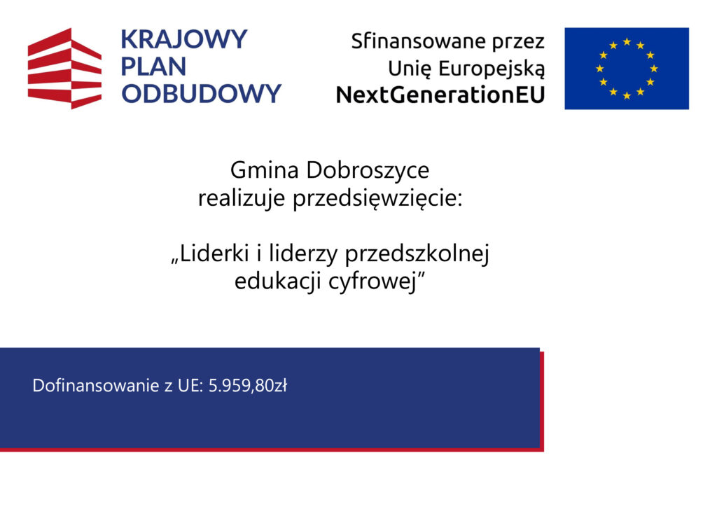 Nasze przedszkole bierze udział w projekcie pod nazwą „Akademia nowych umiejętności” na który Gmina Dobroszyce pozyskała środki unijne w ramach FEDŚ.