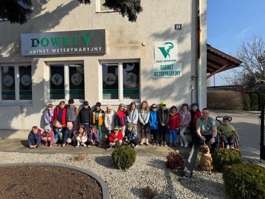 Dnia 12.03.2025r. dzieci z zerówek miały okazję odwiedzić gabinet weterynaryjny DOWET w Dobroszycach, gdzie mogły z bliska zobaczyć, jak wygląda praca lekarza weterynarii. Podczas wizyty mali goście dowiedzieli się, jak dbać o zdrowie zwierząt, jakie badania wykonuje się w gabinecie oraz na czym polega leczenie czworonożnych pacjentów.